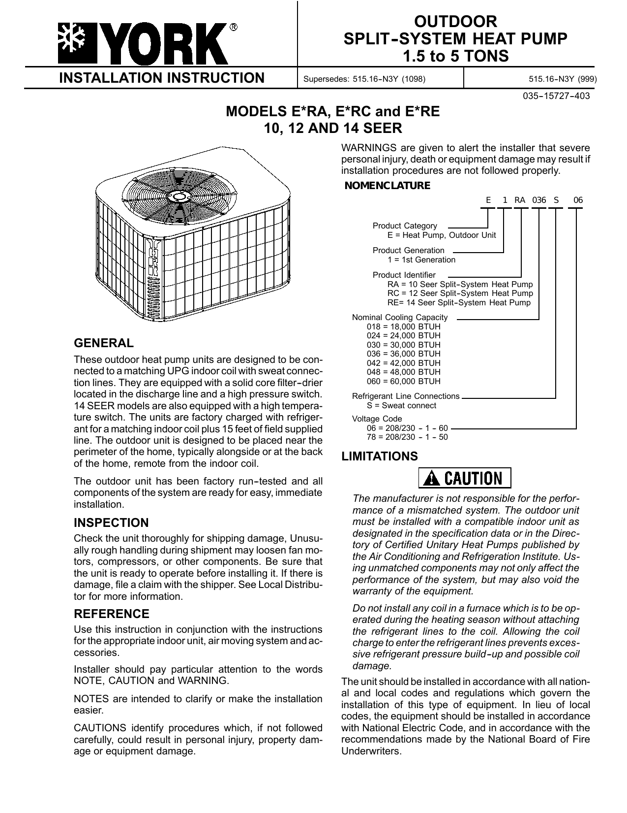Outdoor Split System Heat Pump 1 5 To 5 Manualzz